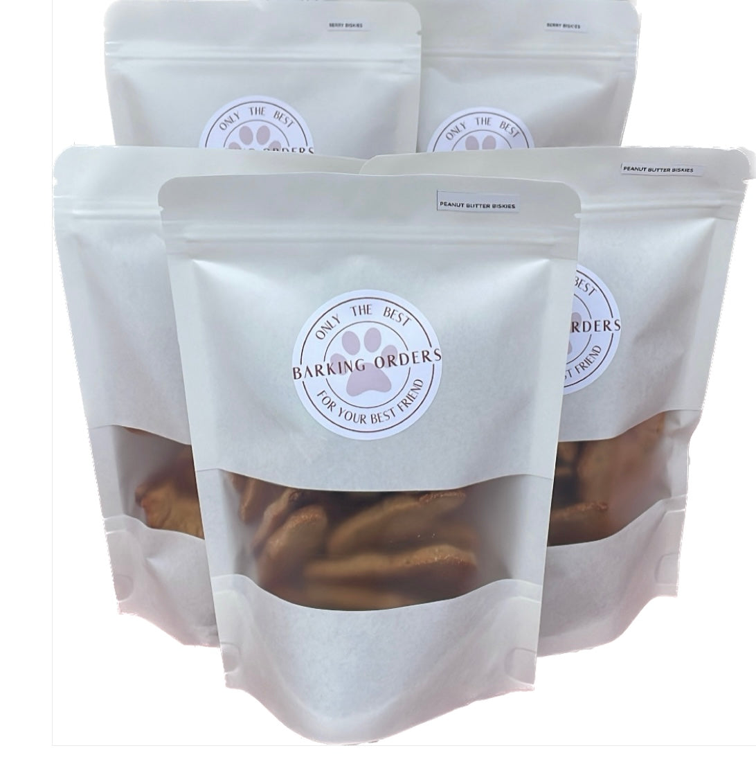 Made with all organic ingredients and organic CRUNCHY peanut butter, this is a classic favorite among all the pups! Just the smell of the treats will have your pups barking for more!